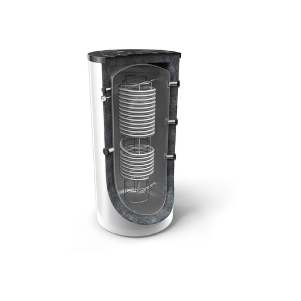 Ευρεία γκάμα δοχείων αδρανείας για κλειστά κυκλώματα θέρμανσης από 200 έως 2000 λίτρα με δύο ενσωματωμένους εναλλάκτες θερμότητας.
